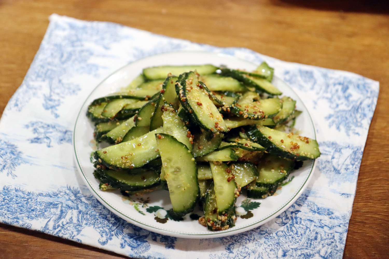 Ensalada Crujiente de Pepino con Mostaza de Grano Entero