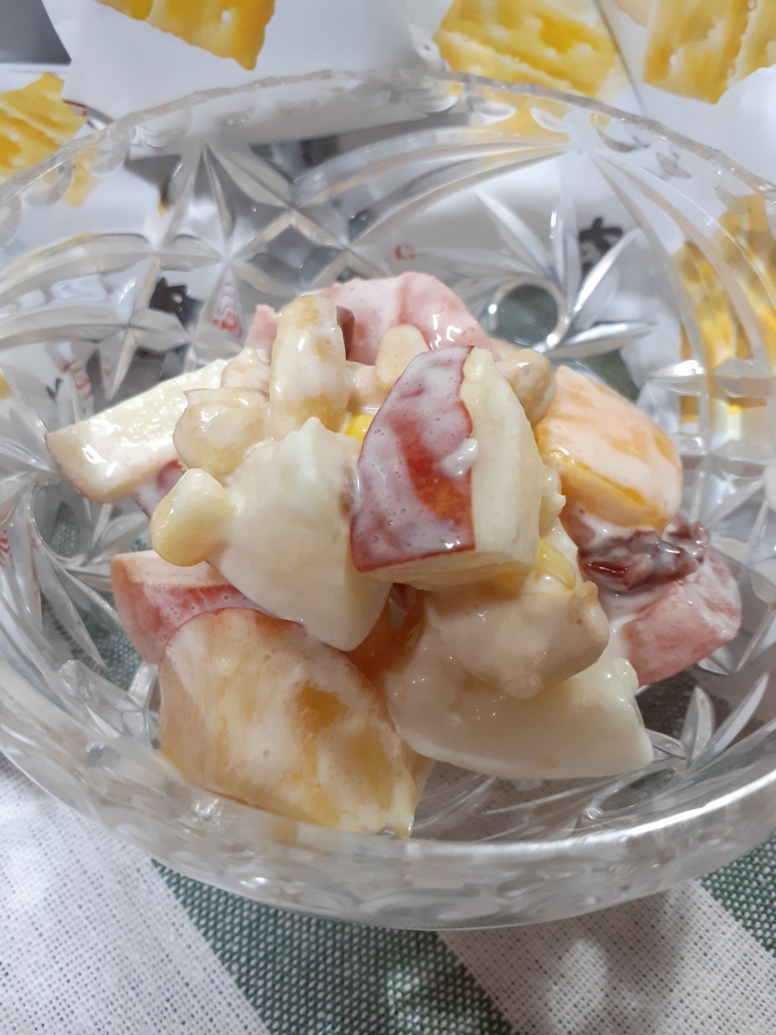 Combina todos los ingredientes preparados en un bol grande. Añade 5 cucharadas de Salsa Cremosa de Maíz Dulce y mezcla suavemente hasta que todo esté uniformemente cubierto. Si no tienes Salsa Cremosa de Maíz Dulce, puedes hacer tu propia salsa mezclando 3 cucharadas de mayonesa con 1.5 cucharadas de miel y, opcionalmente, añadiendo un poco de sirope o azúcar a tu gusto. Mezcla suavemente para asegurar que el aderezo cubra todos los ingredientes de manera uniforme. ¡Tu deliciosa ensalada de frutas está lista!