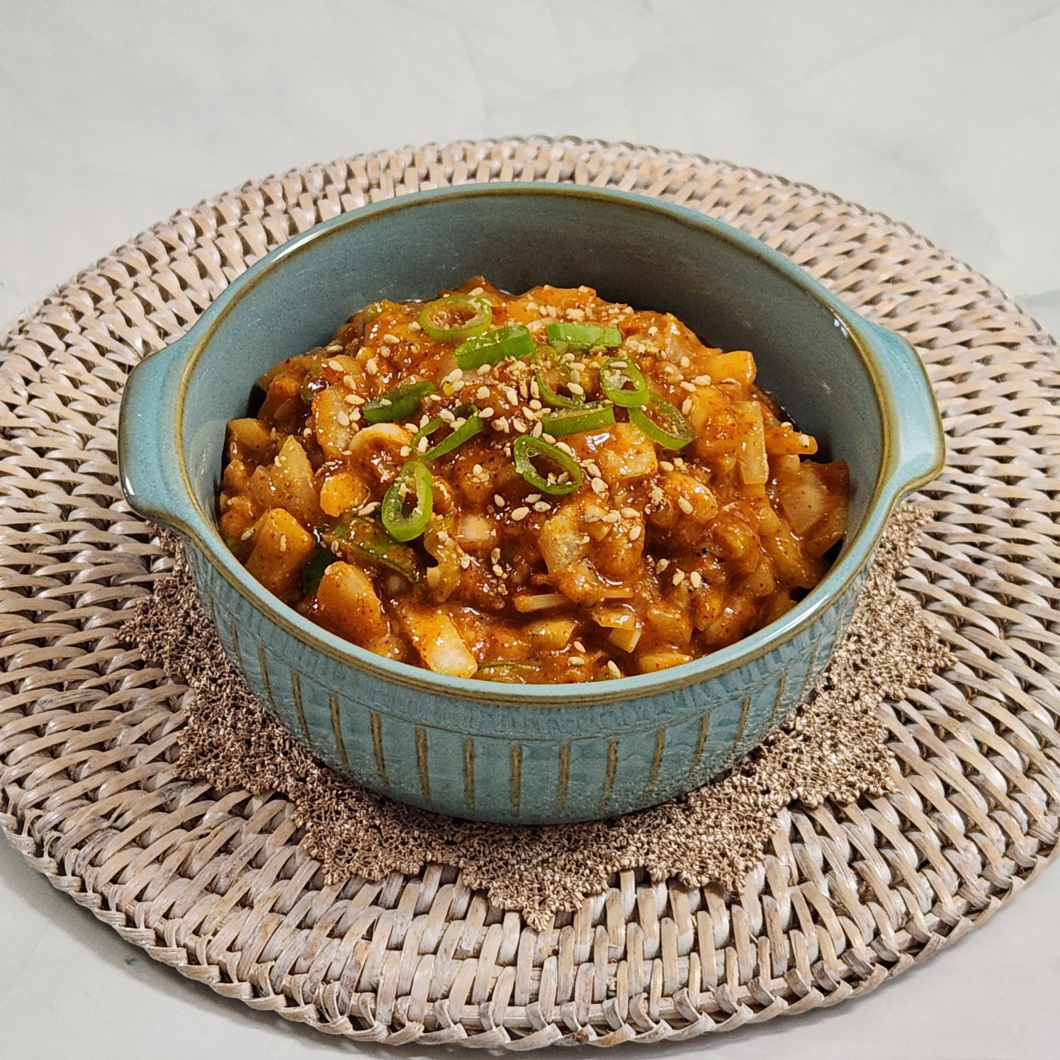 Este Saeu-jeot Muchim es increíblemente delicioso cuando se sirve junto con cerdo hervido (Suyuk o Bossam) o se disfruta con rollos de repollo. Lo hemos preparado con un perfil sabroso y aromático, no salado, que realza sus notas umami y a nuez, convirtiéndolo en un condimento perfecto para cualquier comida.