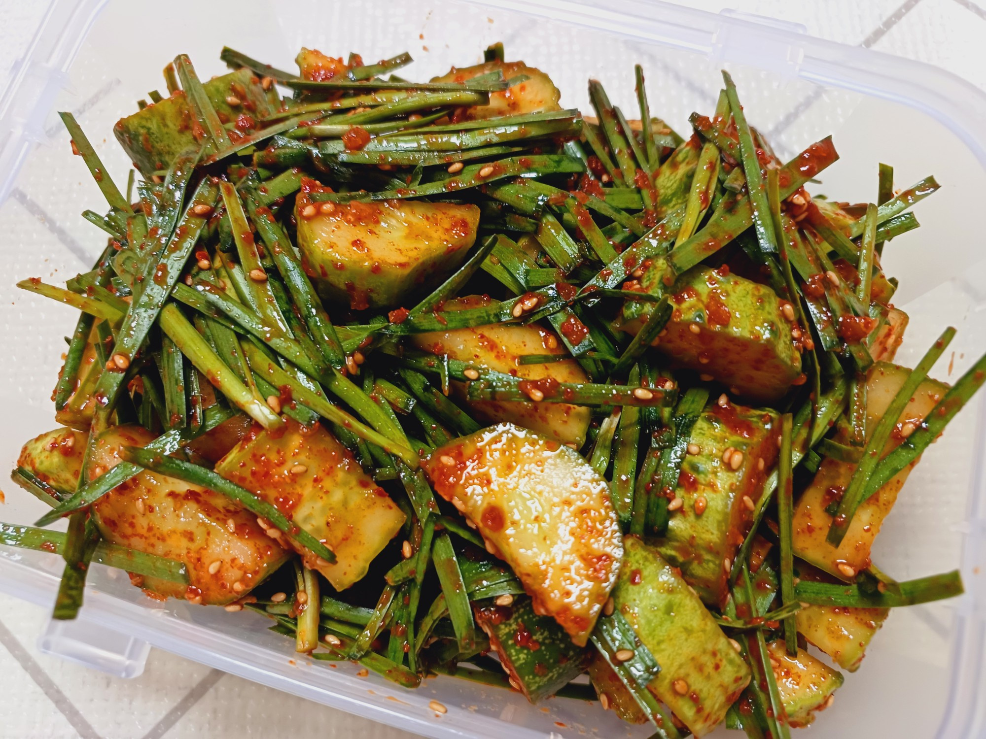 Presentamos una receta sencilla y refrescante de Ensalada de Pepino y Cebollino al estilo Kkakdugi, perfecta para esos días calurosos de verano cuando el apetito puede ser un poco flojo. Este plato se sazona ligeramente, muy parecido a una ensalada fresca (geotjeori), lo que lo convierte en un excelente acompañamiento para el arroz o un delicioso complemento para carnes a la parrilla. Su facilidad de preparación, sin necesidad de fermentación compleja o mucha salsa de pescado, lo hace aún más atractivo.