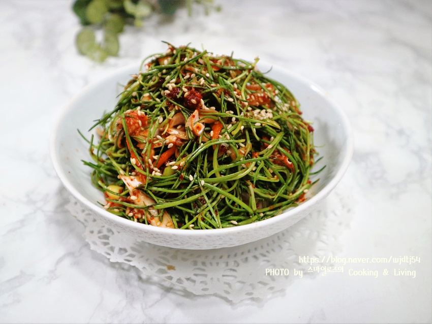Aunque parezca que la primavera ha llegado, el clima frío todavía invita a abrigarse. Sin embargo, podemos traer la primavera a nuestra mesa con esta refrescante, crujiente y deliciosa #EnsaladaDeVerdolagaMarina (#SeBalNamulMuchim). Probé la verdolaga marina por primera vez recientemente y quedé tan cautivada por su sabor que pedí dos paquetes más. Esta vez, decidí prepararla como una ensalada fresca, ¡y debo decir que este sabor es increíblemente adictivo! A diferencia de las versiones cocidas, esta preparación ofrece una experiencia maravillosamente crujiente, ácida y deliciosa. Aunque a menudo se considera una verdura de primavera, la verdolaga marina se puede disfrutar incluso en pleno invierno. Este plato no es solo un acompañamiento delicioso, sino que también está repleto de minerales, conocidos por ayudar a la recuperación de la fatiga, aumentar la inmunidad y prevenir el envejecimiento. Cuenta con un notable contenido de calcio, aproximadamente 20 veces mayor que el de las espinacas, lo que la convierte en una adición valiosa a sus comidas habituales. Aunque me deja con ganas de carne a la parrilla, esta ensalada es lo suficientemente sabrosa como para valerse por sí misma. Es una deliciosa mezcla de textura crujiente, frescura y un equilibrio perfecto de dulce y ácido. Para aquellos que se sienten apáticos, esta verdura marina rica en nutrientes es un excelente tónico. ¡Disfrute de este vibrante plato!