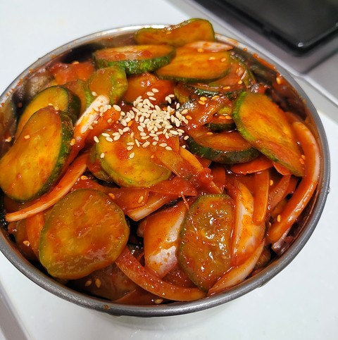¡Hola a todos! Hoy prepararemos una guarnición súper simple que va muy bien con el arroz, usando pepinos frescos: ¡la ‘Ensalada Picante de Pepino’! Esta receta es increíblemente rápida y fácil, perfecta para cualquiera que ame un toque refrescante en su comida.