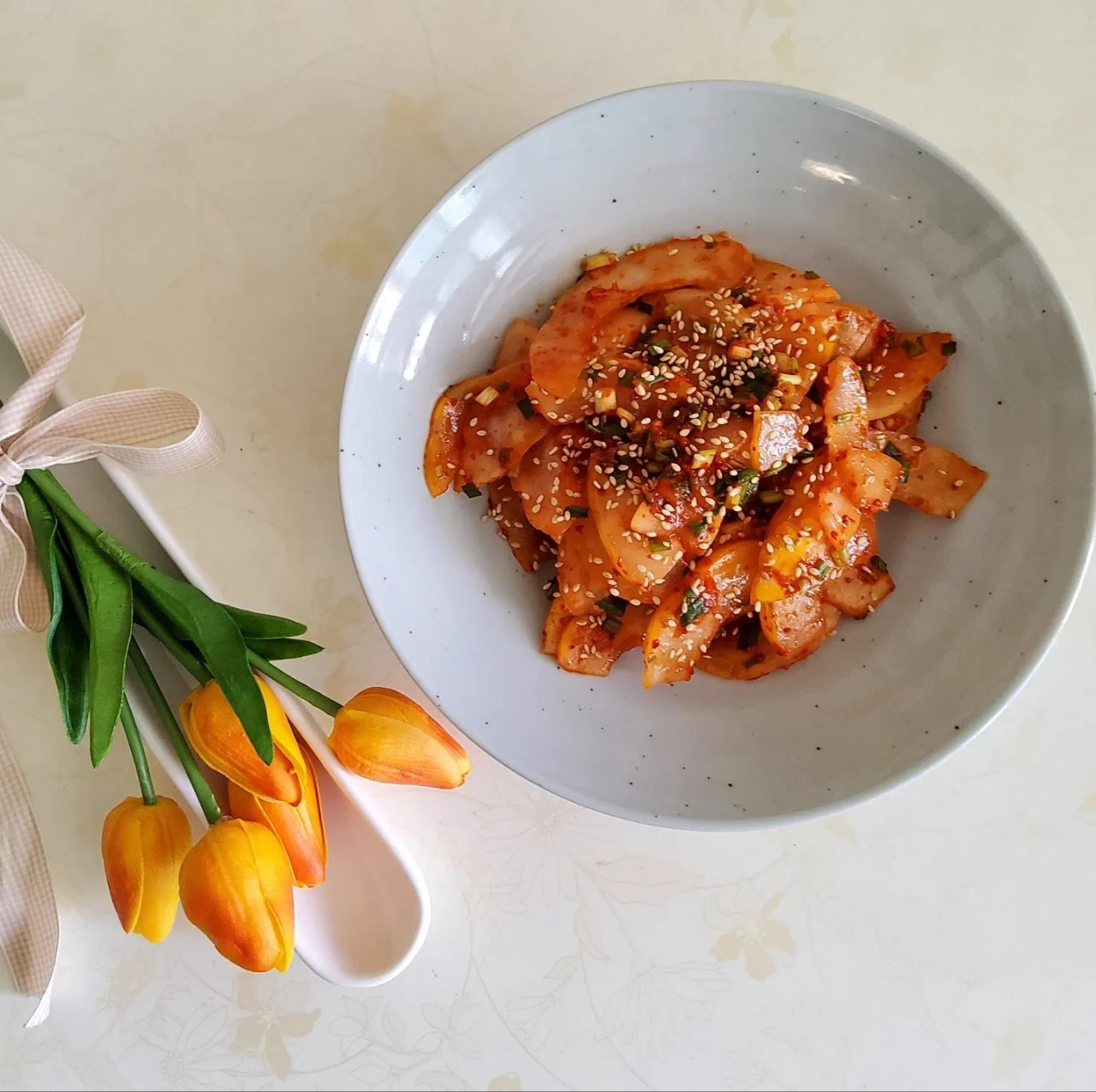 ¡Listo! Así de fácil se prepara esta Chamoe Muchim, una ensalada crujiente, dulce, salada y con un toque picante. ¡Se ve deliciosa y apetitosa!