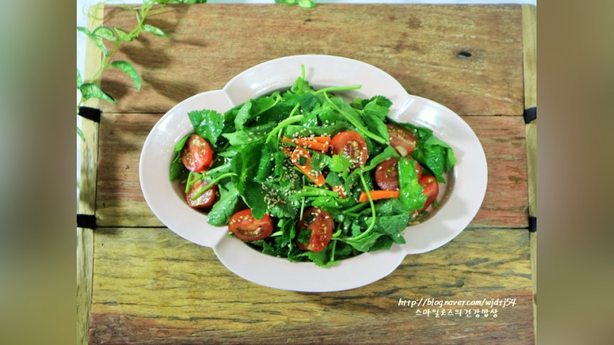 Llevar verduras frescas a la mesa todos los días es el primer paso hacia una dieta saludable. Hoy, preparamos un plato especial usando chamnamul, lleno de la fragancia de la primavera. Después de preparar cuidadosamente el chamnamul, hemos hecho una ‘Ensalada de Chamnamul’ crujiente y refrescante. Mientras que las manzanas se usan a menudo en las ensaladas de chamnamul, esta vez hemos añadido tomates cherry dulces para un sabor aún más brillante. ¡Este ‘plato de Chamnamul’ no solo es excelente como guarnición, sino que también es perfecto como una ensalada ligera. ¡Disfruta de la esencia de la primavera con esta deliciosa ensalada de chamnamul!