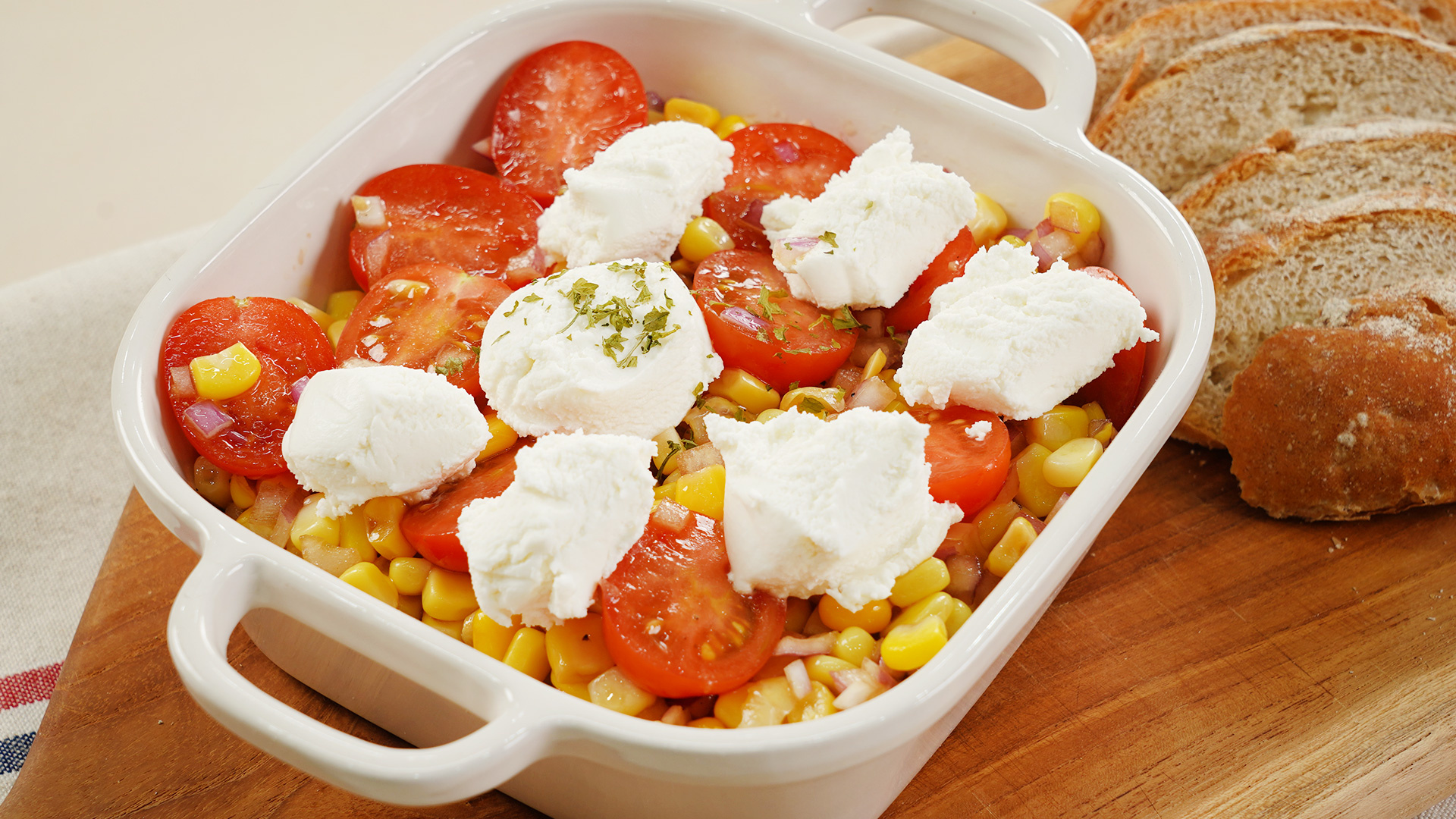 ¿Buscas una ensalada ligera pero satisfactoria? ¡La Ensalada de Tomate Cherry y Maíz es tu respuesta! Se prepara rápidamente con ingredientes sencillos, y la adición de queso ricotta aporta un delicioso toque a nuez. Puedes preparar fácilmente el aderezo con ingredientes que ya tienes en casa, ¡así que asegúrate de probarla!