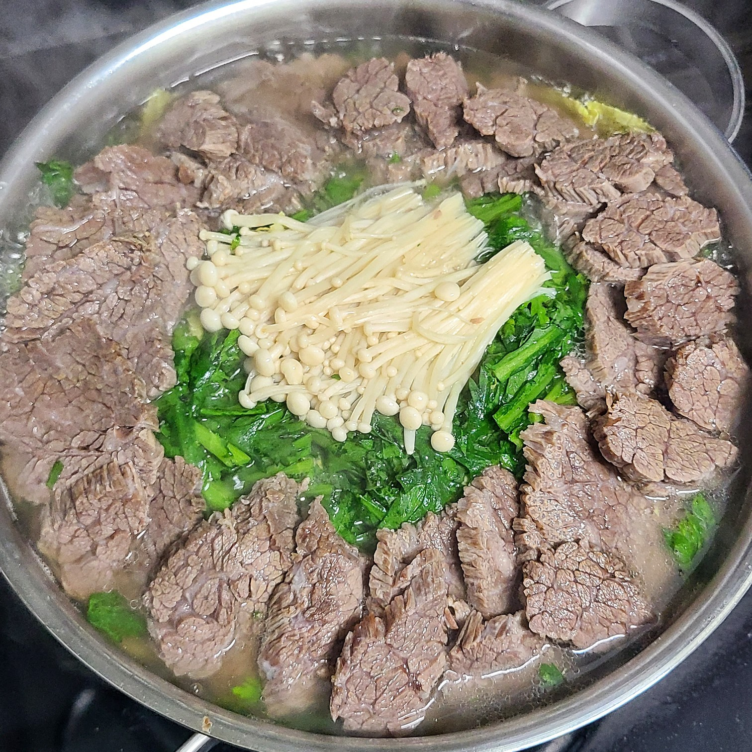 Con el clima fresco, un plato de caldo caliente y reconfortante siempre es una delicia. Para una ocasión especial, ¿por qué no probar algo un poco diferente y preparar Eobok Jungban en casa? El Eobok Jungban es un estofado estilo Pyongyang donde la pechuga de res finamente cortada y varias verduras frescas se escaldan ligeramente y se sirven. Utiliza principalmente pechuga de res tierna, creando un perfil de sabor delicado y refrescante. Aunque a menudo es costoso cuando se pide en restaurantes, es sorprendentemente fácil recrear este delicioso plato en su propia cocina con ingredientes frescos. La clave para un Eobok Jungban exitoso reside en cocinar perfectamente la carne hasta que esté maravillosamente tierna. Con un poco de atención a este paso, puede lograr fácilmente una comida de calidad de restaurante que es perfecta para celebrar.
