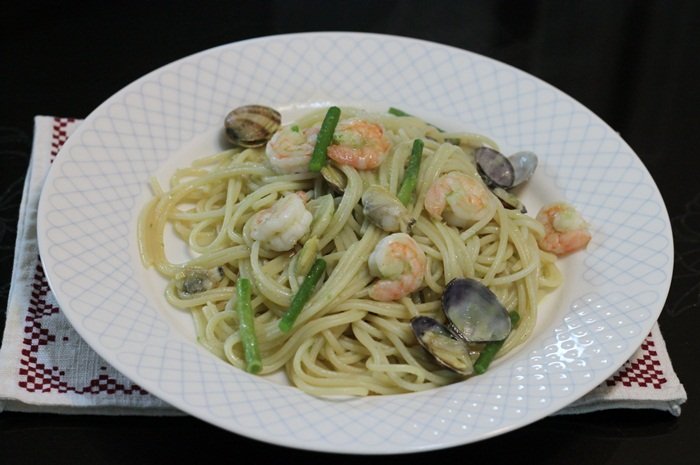 Espaguetis de Ajo Verde, Camarones y Chile Cheongyang