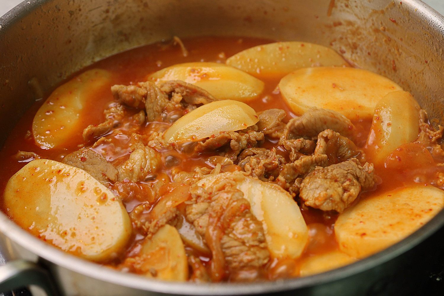 ¡Una deliciosa combinación de patatas tiernas y cerdo jugoso, cocinados a fuego lento en una salsa sabrosa, ligeramente picante y dulce! Este plato es tan delicioso que te encontrarás pidiendo cuenco tras cuenco de arroz. Si estás a dieta, ¡considera esto una indulgencia especial! Es una receta verdaderamente irresistible que vaciará tu olla arrocera en poco tiempo. ¡Prepara una comida satisfactoria que no podrás dejar de comer!