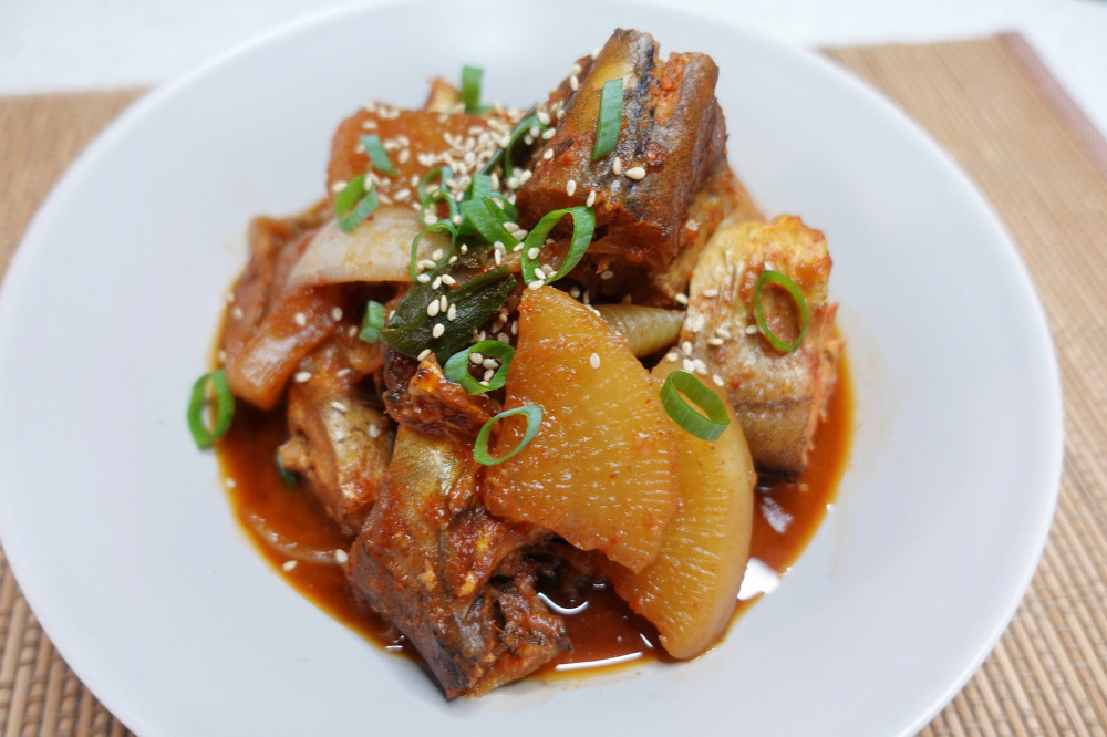 Estofado de Kodari (Abadejo Seco) con Rábano Coreano, Picante y Dulce