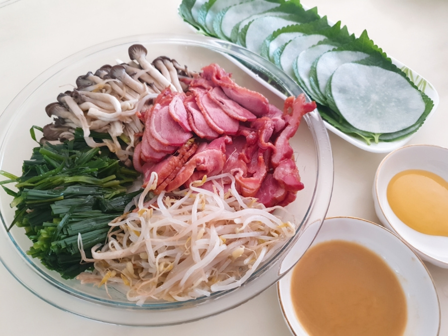 Una vez que las verduras para enrollar y la deliciosa salsa de mostaza estén listas, tu estofado de pato con brotes de soja y verduras ‘jjim’ estará perfectamente cocido y humeante. La frescura de las verduras y la ternura del pato crean un sabor saludable y delicioso.