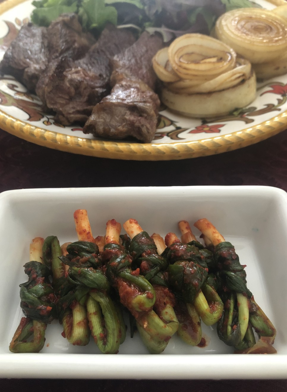 A pesar de que mi kimchi de cebolleta casero (Pakimchi) no estaba completamente curado durante los diez días recomendados, la impaciencia me llevó a sacarlo para una ocasión especial. Decidí maridarlo con un filete perfectamente asado, ¡y el resultado fue extraordinario! Asar el filete para lograr un exterior crujiente y un interior tierno y jugoso, y luego complementarlo con el toque picante del Pakimchi, crea una sinfonía de sabores. Esta receta te guiará para crear una experiencia de filete de calidad de restaurante en tu propia cocina. Prepárate para un delicioso viaje culinario donde las notas punzantes del kimchi y el rico aroma del filete armonizan maravillosamente en tu paladar.