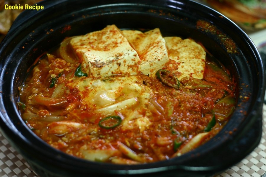 Mientras el estofado hierve, agregue la cebolla en rodajas, la cebolleta cortada en diagonal y los chiles Cheongyang para infundir el caldo con su aroma. Ahora, agregue 2 cucharadas de salsa de soja y ajuste el sazón a su gusto. Una vez que el sazón esté equilibrado, coloque con cuidado el tofu en rodajas alrededor de los bordes de la olla. Espolvoree un poco más de polvo de sancho por encima para una capa extra de sabor. Justo antes de apagar el fuego, rompa un huevo directamente en el estofado. Después de que el estofado esté completamente cocido, decore generosamente con perilla fresca para una presentación hermosa y un toque final de frescura herbácea.