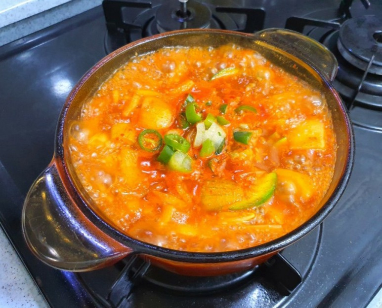 Finalmente, agrega los chiles coreanos picados y las cebolletas (opcional, si están preparados) y deja que hierva un momento más. ¡Tu delicioso y picante Estofado de Papa y Gochujang está listo! Disfrútalo con un tazón de arroz caliente.