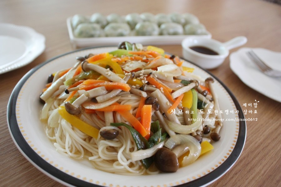 Fideos y Verduras- 1 porción de fideos somyeon (aproximadamente del tamaño de una moneda de 500 wones)
