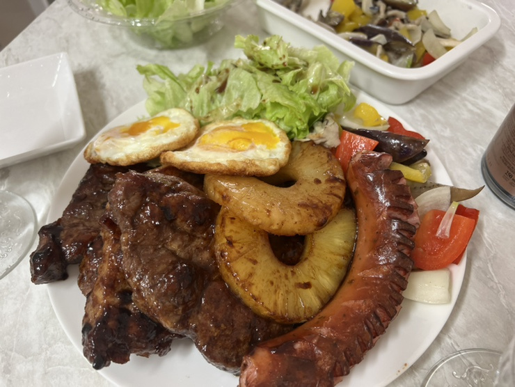 Para un toque extra de sabor, ase las rodajas de piña junto con el filete. Para servir, arrange el filete de paleta de cerdo bellamente cocido, las verduras salteadas y la piña asada en un plato bonito. ¡Disfrute de su deliciosa cena de filete casero!
