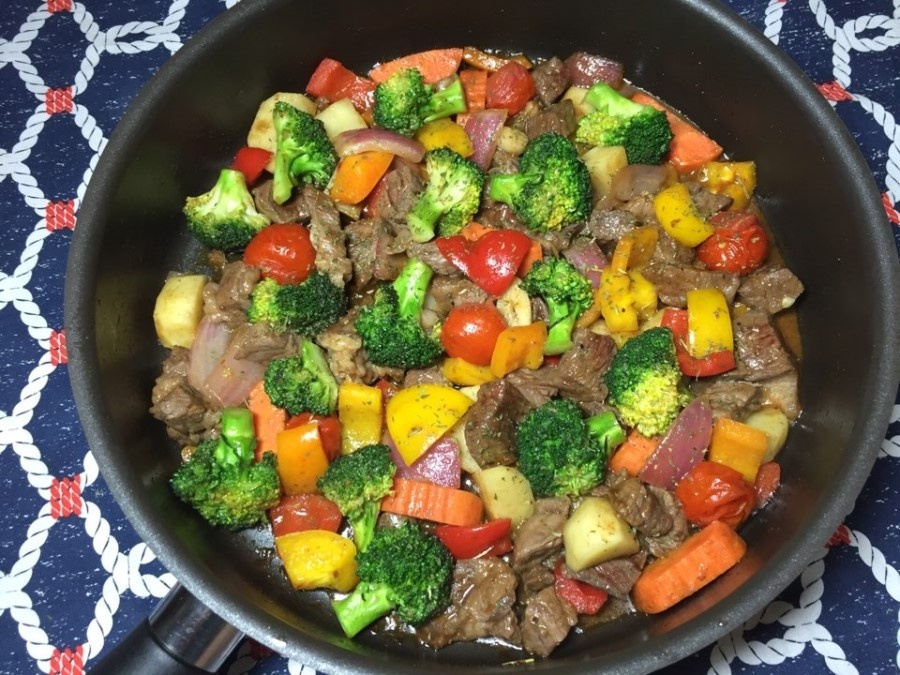 Agregue las verduras picadas a la sartén con el aceite restante (o añada 2 cucharadas de aceite de oliva fresco). Saltee primero las verduras más duras como zanahorias y patatas hasta que comiencen a ablandarse, luego agregue las cebollas y los pimientos morrones. Saltee hasta que las verduras estén tiernas pero crujientes, conservando un ligero mordisco.