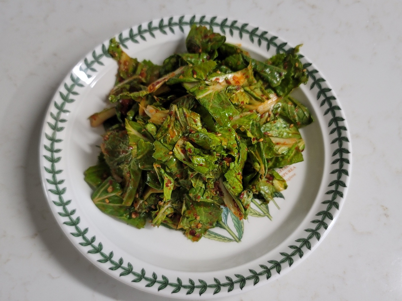 En un bol grande, combina todos los ingredientes del aderezo. Agrega 1.5 cucharadas de gochugaru (copos de chile coreano), 0.5 cucharada de ajo picado y 1.5 cucharadas de salsa de pescado (anchoa o lanzón). Luego, añade 1 cucharada de sirope de oligo para darle dulzor, 1 cucharada de aceite de sésamo para un aroma a nuez y, finalmente, 1 cucharada de semillas de sésamo tostadas para un sabor adicional. Revuelve todo con una espátula o cuchara hasta que esté bien combinado.