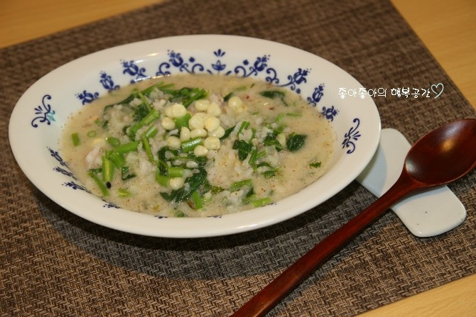 ¡En mi casa hay alguien que adora el maíz! No puede resistirse, ni siquiera se despierta de un sueño profundo por él. Este verano, debimos cocinar una cantidad increíble de maíz. Sin embargo, a veces nos encontramos con maíz que no está a la altura. Esos granos a menudo se pasan por alto. Recojo esos granos de maíz sobrantes y preparo unas reconfortantes gachas de maíz usando arroz restante. ¡Es un plato fantástico para una comida individual! El delicioso toque crujiente de los granos de maíz añade una textura maravillosa y realza el sabor.