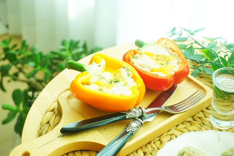 Gratinado de Pimiento Relleno de Mandu: ¡Un Bocadillo Delicioso y Satisfactorio para Disfrutar Solo!