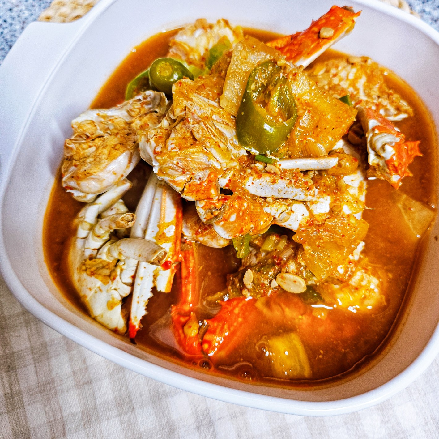 A medida que los cangrejos comiencen a cocinarse, incorpore 2 cucharadas de gochugaru (copos de chile coreano). Esto añadirá un agradable toque picante y un hermoso y apetitoso color al guiso.