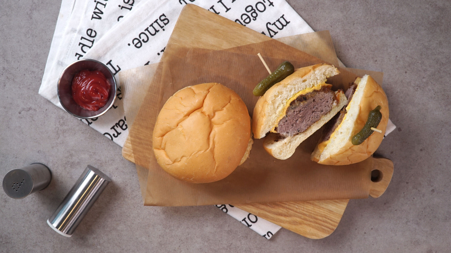 Durante los últimos 1-2 minutos de cocción de las hamburguesas, coloca las rodajas finas de cebolla encima de cada hamburguesa. Si es necesario, tapa la sartén brevemente para ayudar a que las cebollas se ablanden y se cocinen. Las cebollas absorberán parte de los jugos de la carne y se volverán maravillosamente dulces.