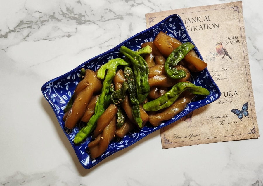 Hoy cocinamos con konjac, un alimento bajo en calorías popular para dietas. Esta receta combina konjac con judías verdes crujientes para un plato sabroso y saludable, perfecto como acompañamiento o plato principal ligero.