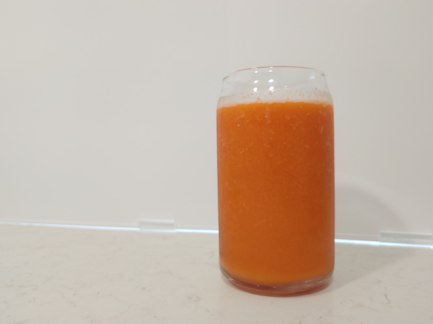 Una vez que todos los ingredientes estén en la licuadora, asegure bien la tapa y licúe hasta que la mezcla esté completamente suave. Su delicioso Jugo de Tomate y Zanahoria estará listo para servir inmediatamente. ¡Vierta en un vaso y disfrute bien frío!