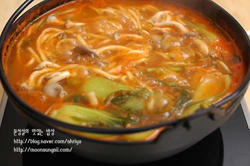 Kalguksu de Champiñones Picante y Abundante con Arroz Frito