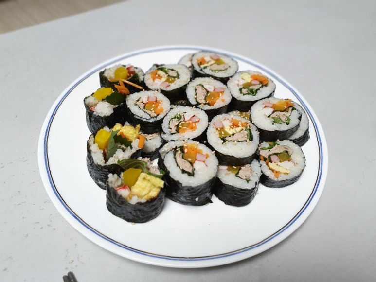 Estaba pensando qué preparar para comer y se me ocurrió el Kimbap de Atún. ¡Así que decidí hacerlo! Aquí les presento una deliciosa receta casera de Kimbap de Atún. ¡Disfruta de esta exquisita creación casera!