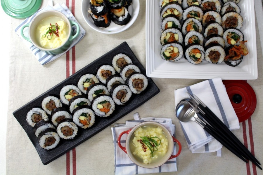 Kimbap de Kimchi Salteado y Kimbap de Pastel de Pescado