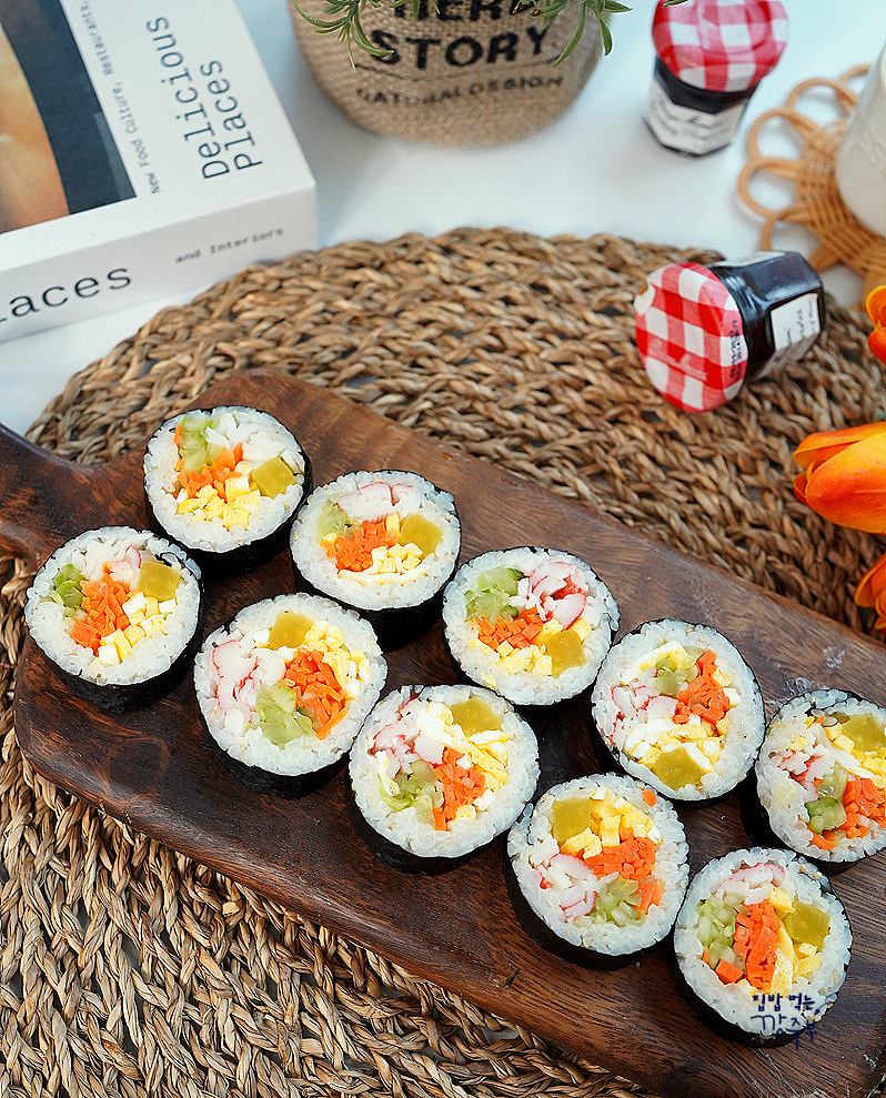 Presentamos una receta sencilla y refrescante de kimbap de ensalada, ideal para una comida ligera y saludable, preparada con ingredientes que probablemente ya tienes en casa. Aunque omite el jamón, incluye todos los rellenos fundamentales del kimbap. Para una experiencia aún más deliciosa, siéntete libre de aumentar la cantidad de tus verduras favoritas. ¡Este kimbap es tan sabroso que incluso los niños pedirán más! Disfruta del delicioso crujido de las verduras cortadas en juliana fina en esta receta de kimbap de ensalada de palitos de cangrejo.