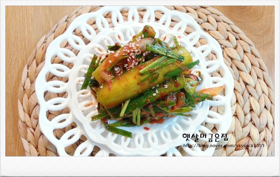 Finalmente, añade las cebolletas recién lavadas y picadas. Mezcla suavemente todo hasta que esté bien combinado, ¡y tu delicioso kimchi de pepino estará listo! A diferencia del tradicional ‘oi sobagi’, donde preparas un relleno aparte, este método es increíblemente simple y da resultados fantásticos. Asegúrate de mezclar a fondo para que el condimento llegue a todas las partes del pepino. (Aunque esta receta es similar al ‘oi sobagi’, llamarlo ‘Oi Buchu Kimchi’ es perfectamente adecuado).