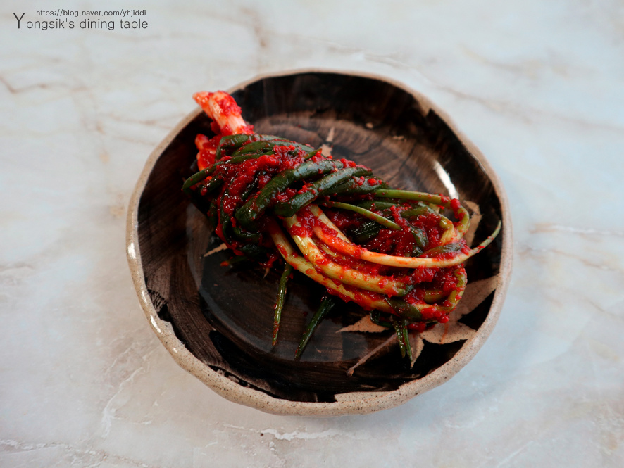 ¡Disfruta de tu delicioso kimchi de cebolleta al estilo Baek Jong-won! Es perfecto servido con arroz recién cocido.