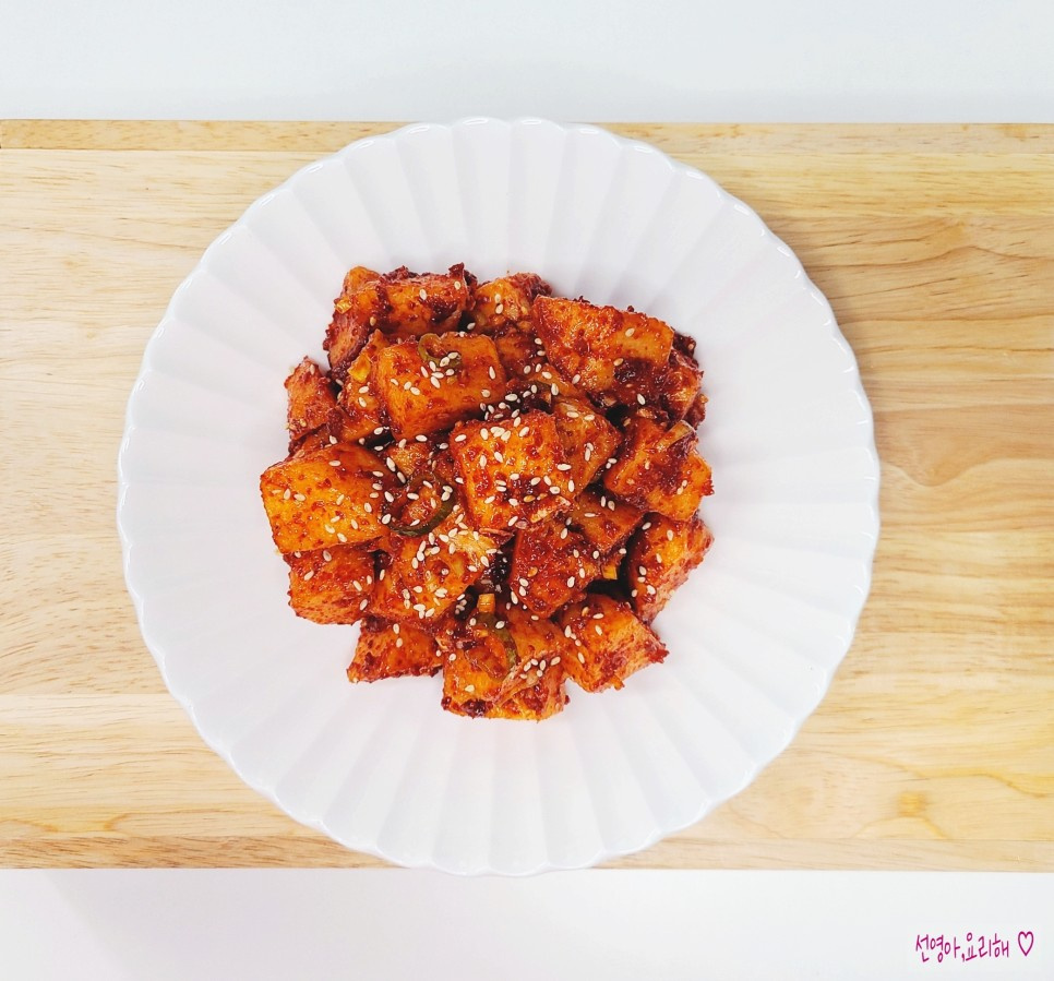 ¡Voilá! Su delicioso y apetitoso kimchi de pera está listo. Aunque es delicioso para comer inmediatamente, permitir que fermente en el refrigerador durante aproximadamente un día intensificará los sabores y lo hará aún más refrescante. ¡Cree una comida abundante con este delicioso kimchi de pera!