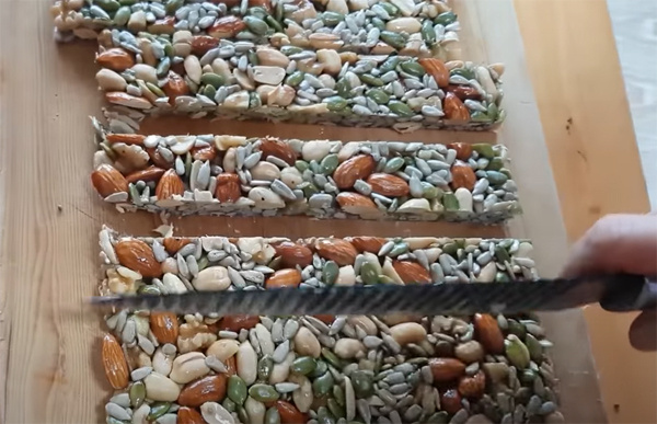 Debido a que los frutos secos se unen bastante firmemente, es posible que necesites usar algo de fuerza al aplanarlos. Las barras de frutos secos resultantes son un excelente bocadillo y un delicioso manjar casero que también es bueno para tu salud. ¡Disfruta!