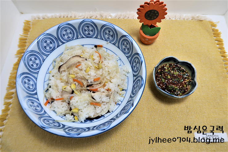 ¡Su delicioso Kongnamulbap está completo! Sírvalo caliente con la salsa de condimento preparada y mezclada para una comida saludable y satisfactoria. ¡Disfrute de su cocina!