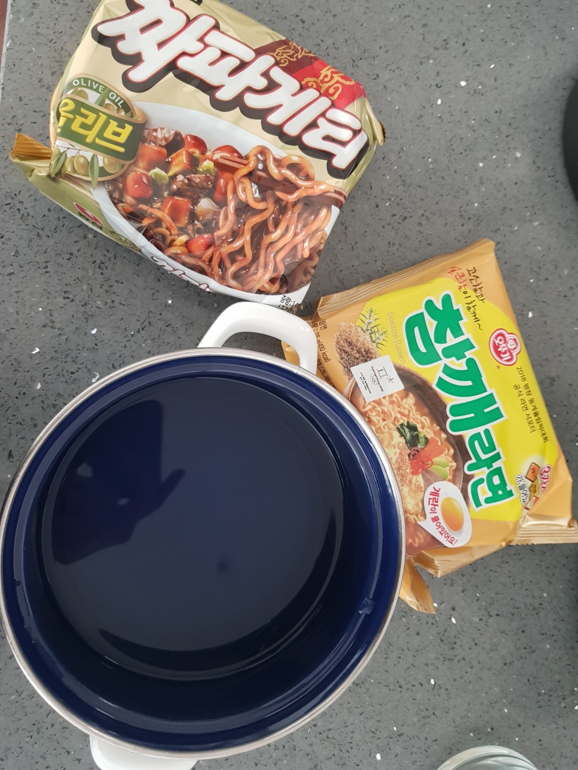 Añade un poco más de agua a la olla con el caldo restante. Suficiente para cocinar los fideos de Chamggae Ramen.