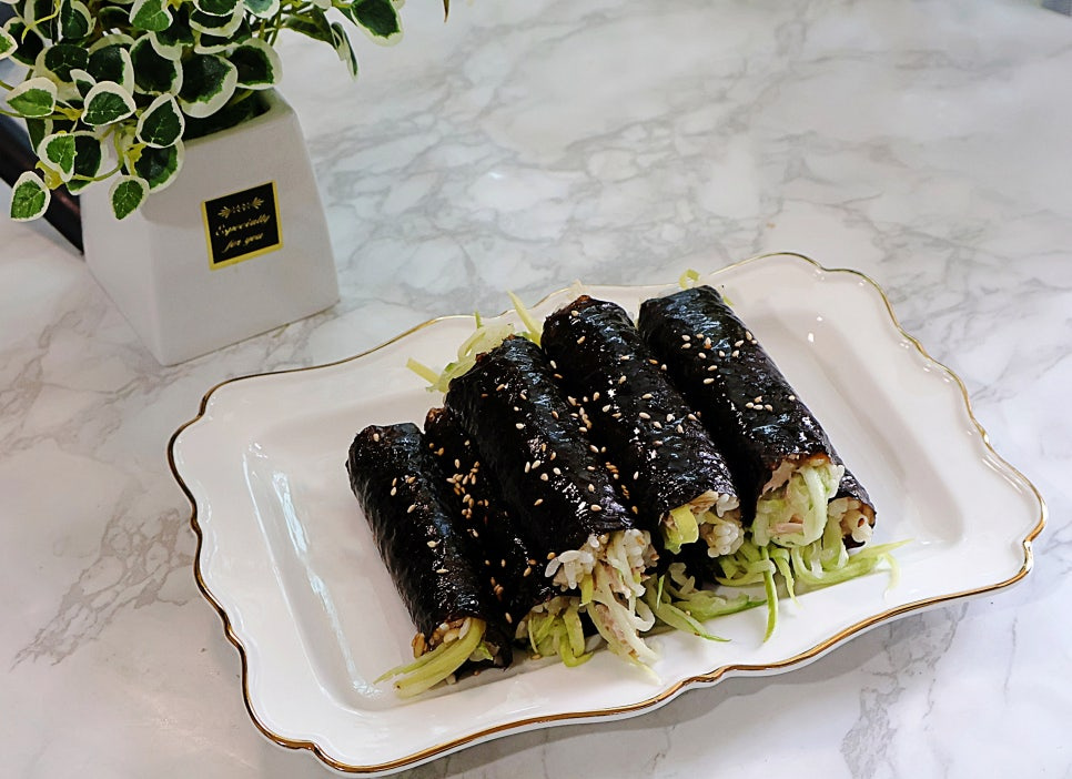 ¡Siente tu cuerpo más ligero! ¿Qué te parece preparar estos ‘Mini Gimbap de Pepino y Atún para Dieta’ que puedes disfrutar sin preocuparte demasiado por las calorías? Son tan saciantes que puedes comer varios sin sentirte pesado, lo que los hace muy recomendables para quienes están a dieta. ¡Disfruta de estos deliciosos Mini Gimbap de Pepino y Atún, hechos con ingredientes sencillos pero llenos de sabor!