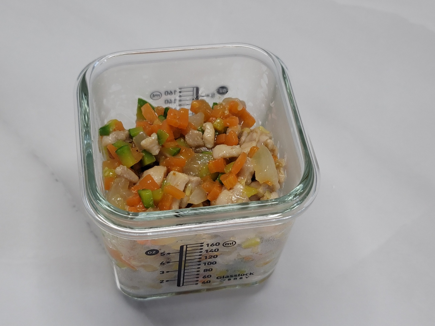 Primero, verifica cuidadosamente y lava todos los ingredientes necesarios para el plato de hoy. Pica finamente la zanahoria, la cebolla y el calabacín en trozos más pequeños que el tamaño de un bocado, haciéndolos fáciles de comer para tu bebé.