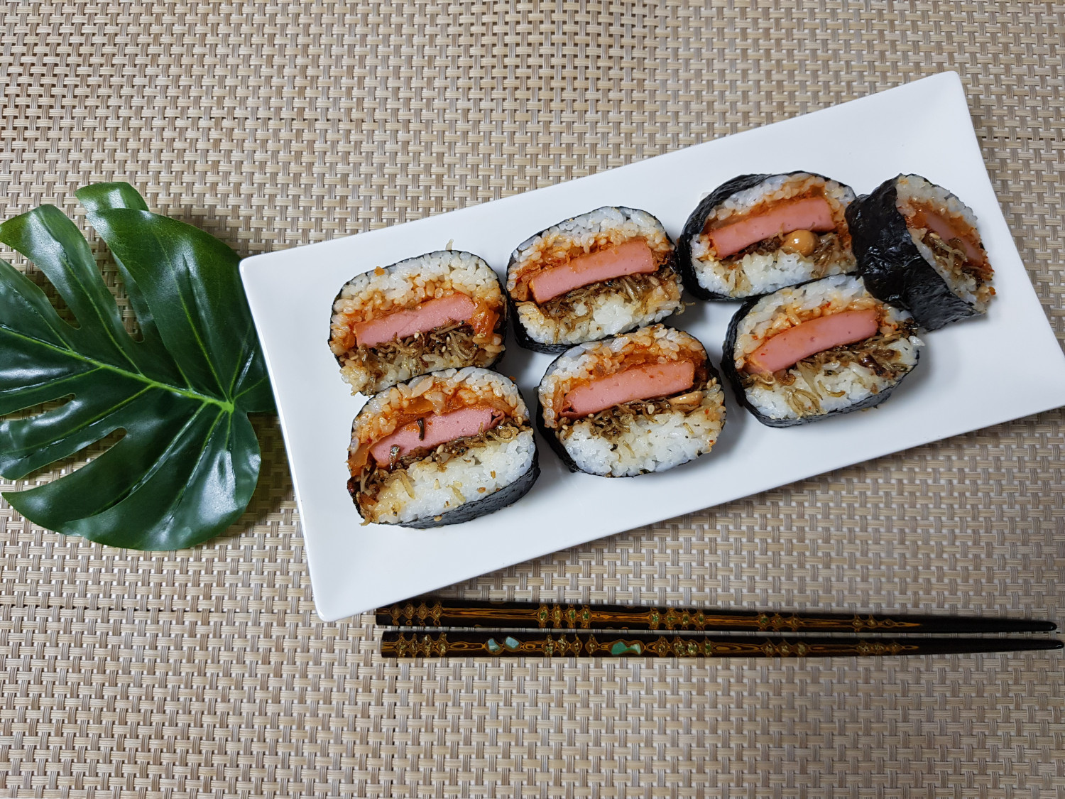 Musubi Nostálgico con Salchicha Rosa y Anchoas Salteadas