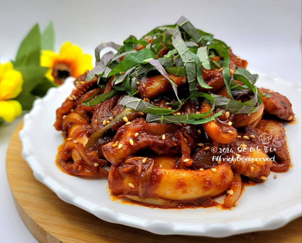 Osam Bulgogi Estilo Baek Jong-won (Calamares y Panceta de Cerdo Salteados)