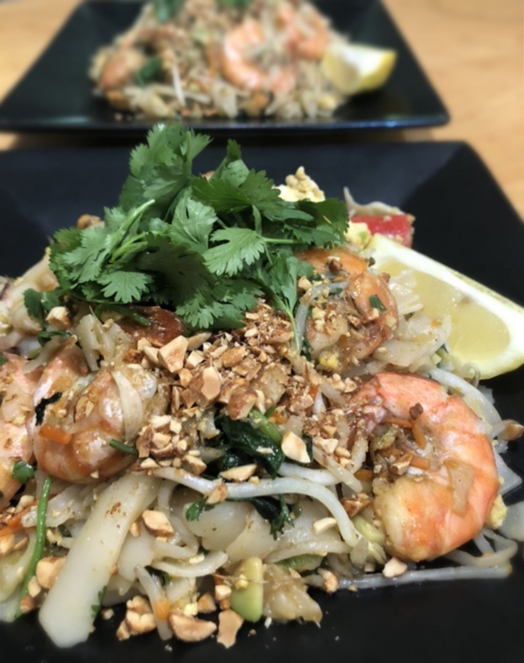 Transfiera el Pad Thai terminado a un plato para servir. Para un toque adicional de crocante y sabor a nuez, espolvoree con cacahuetes tostados triturados si lo desea.