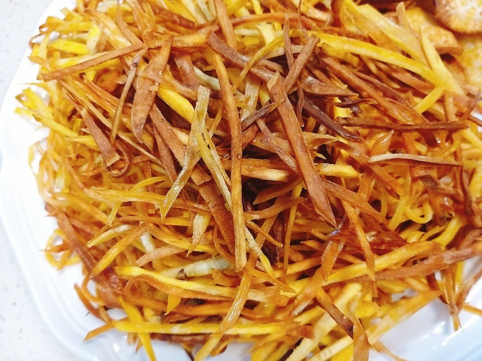 Los bastones de boniato pueden parecer blandos al principio al agregarlos al aceite caliente, ¡pero no se preocupe! A medida que se cocinan, su humedad se evaporará y gradualmente se volverán crujientes. Una vez que los bastones de boniato comiencen a adquirir un color dorado, dales la vuelta para asegurar una cocción uniforme. Vigile el color para evitar que se quemen; retirarlos en el momento adecuado es clave.
