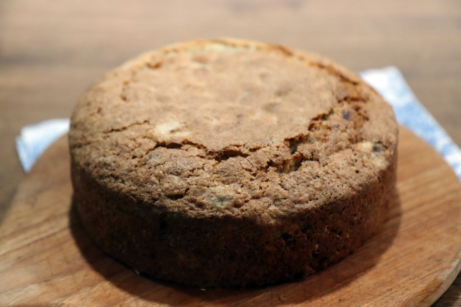Vierte la masa en un molde redondo preparado (aproximadamente 18-20 cm de diámetro). Puedes forrar el molde con papel de horno o engrasarlo ligeramente para evitar que se pegue. Alisa la parte superior de la masa con la espátula. Espolvorea las almendras laminadas reservadas uniformemente por encima para un acabado atractivo.