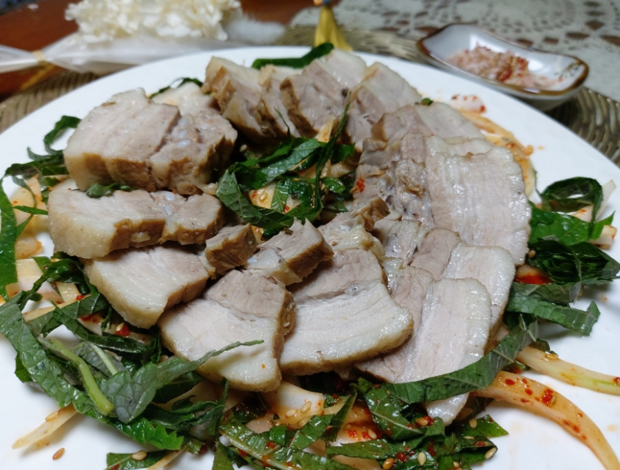 Receta para Hervir Panceta de Cerdo Estilo Bossam y Ensalada de Vegetales Acompañante