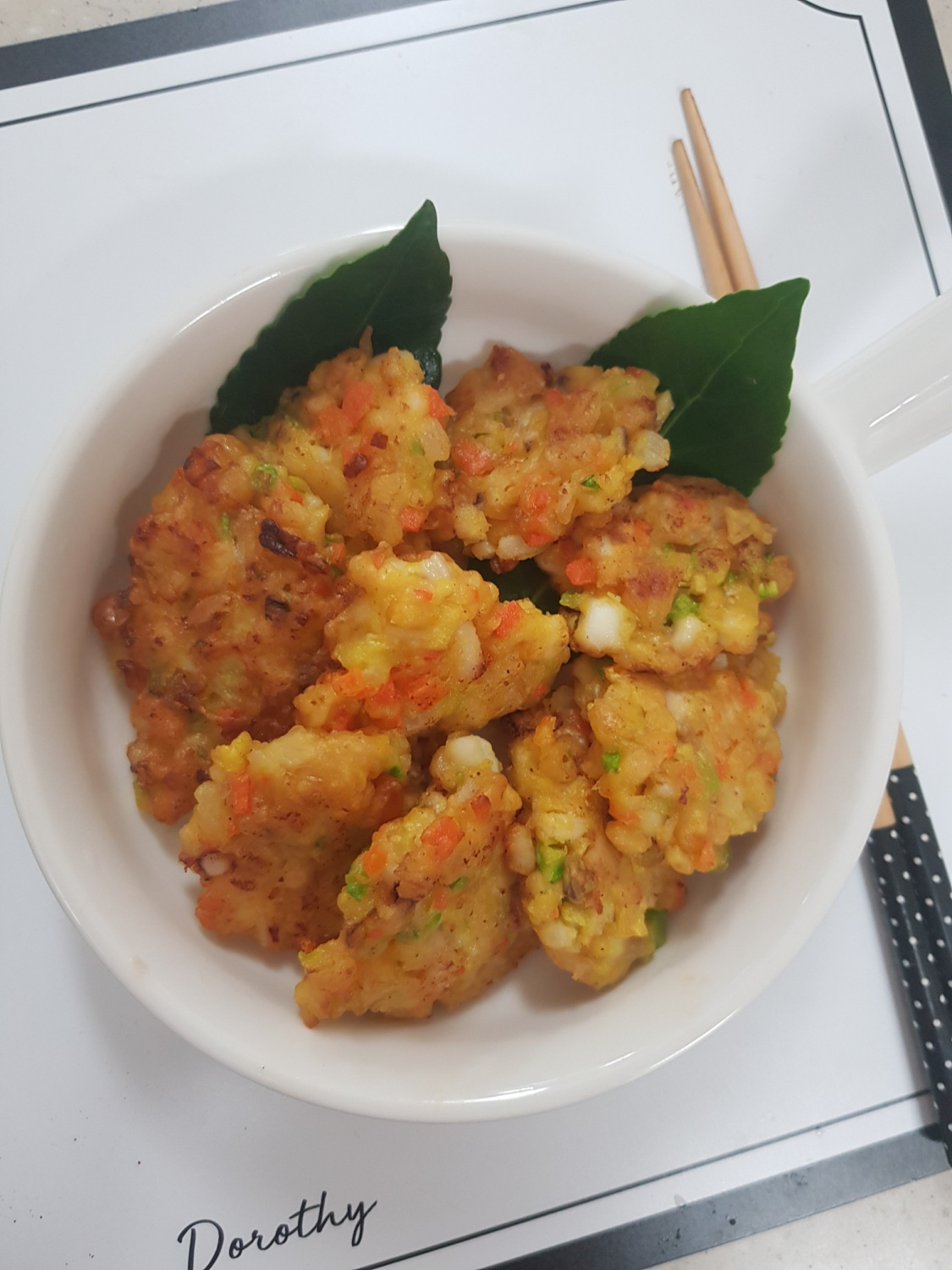 ¡Este plato evoca recuerdos de mi infancia, cuando mi abuela me los preparaba con frecuencia! Ahora, es mi turno de hacerlos para mis hijos. Están repletos de calamar tierno y verduras crujientes, creando una combinación de textura y sabor maravillosa. El uso de harina para tempura garantiza una deliciosa crocancia, haciendo que estos panqueques sean un éxito seguro para todos.