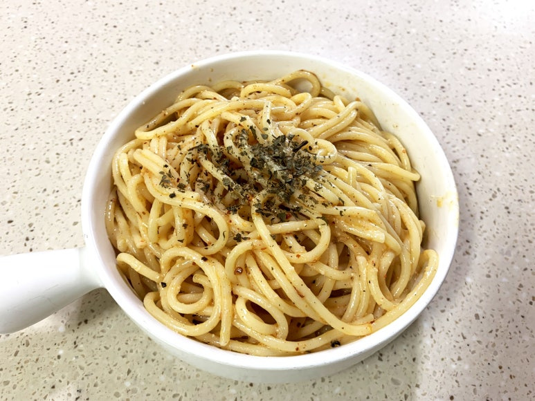 Esta es una receta única de pasta mezclada (bibim pasta) que utiliza una salsa picante de tofu, mayonesa y huevas de abadejo, y se mezcla en lugar de saltearse. Es simple pero presume de un sabor sofisticado, y es perfecta para disfrutar con pizza, ya que el toque picante corta maravillosamente la riqueza. ¡Experimenta un plato de pasta especial con un sabor de calidad de restaurante en tu propia casa!