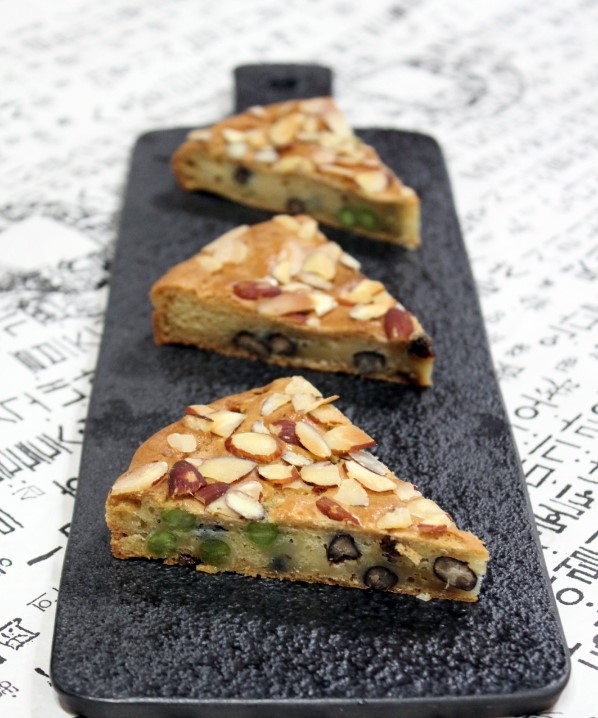 Añade la pasta de judías rojas dulces, la pasta de guisantes dulces y las pasas a la masa. Remueve suavemente para distribuirlos uniformemente. No escatimes en los rellenos, ¡aportan una textura y dulzura maravillosas! La pasta de guisantes dulces es especialmente deliciosa por sí sola.