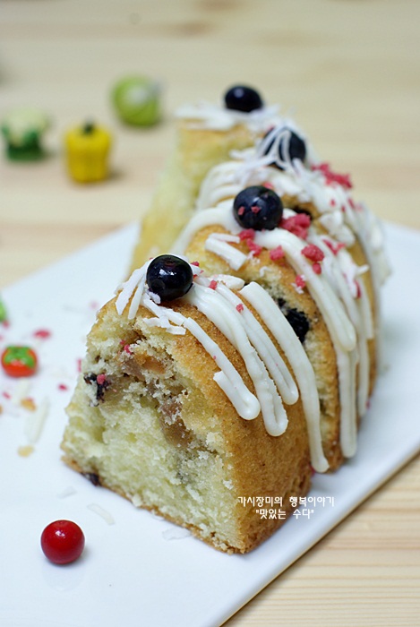 Una vez fuera del horno, deje enfriar el pastel en el molde durante unos minutos antes de desmoldarlo sobre una rejilla para que se enfríe por completo. Derrita el chocolate blanco suavemente al baño maría. Rocíe el chocolate blanco derretido sobre el pastel enfriado en un patrón decorativo. Por último, decore la parte superior con arándanos frescos, crujientes láminas de coco u otros adornos deseados para crear una presentación hermosa.