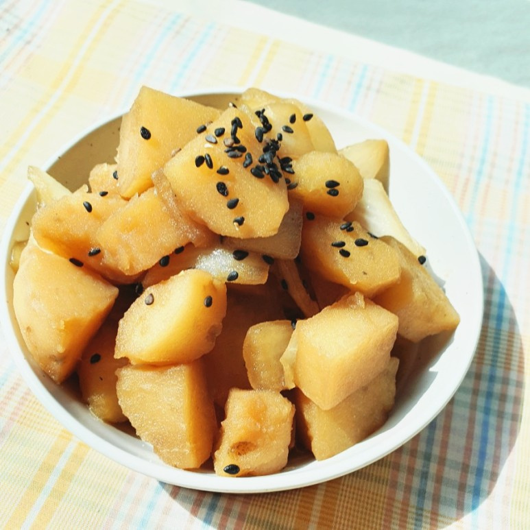 ¡Crea un plato maravilloso con las patatas que tienes en la nevera! Las patatas guisadas en una salsa de soja salada y dulce son una opción fantástica como acompañamiento para los niños o incluso como un bocadillo para adultos. Es fácil y rápido de preparar en una sola olla, lo que lo hace sin estrés incluso en días ajetreados. La textura esponjosa de las patatas combinada con la sabrosa salsa te hará terminar un bol de arroz en poco tiempo.